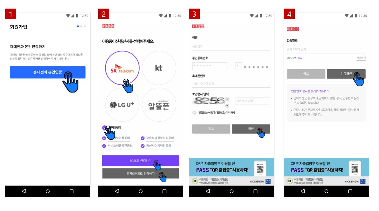 ④ 약관 동의 화면에서 필수 약관을 모두 동의하고 하단에 있는 [다음] 버튼을 클릭합니다.