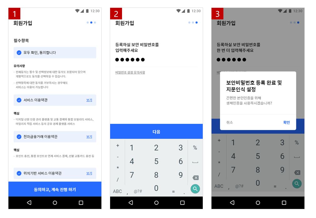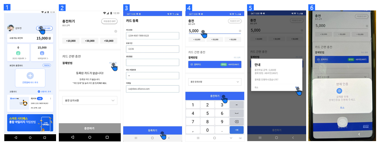 ⑥생체인증 또는 보안 비밀번호 입력으로 충전을 완료합니다.