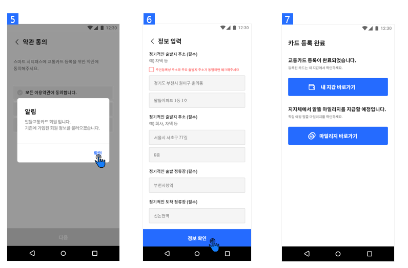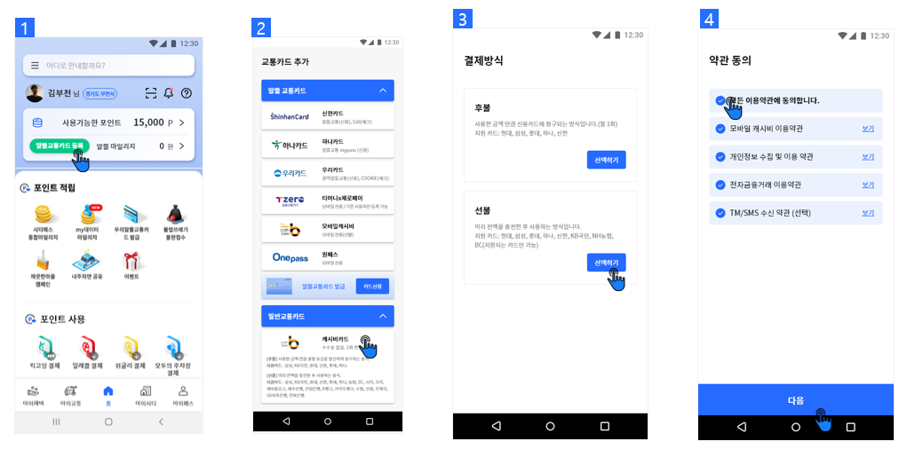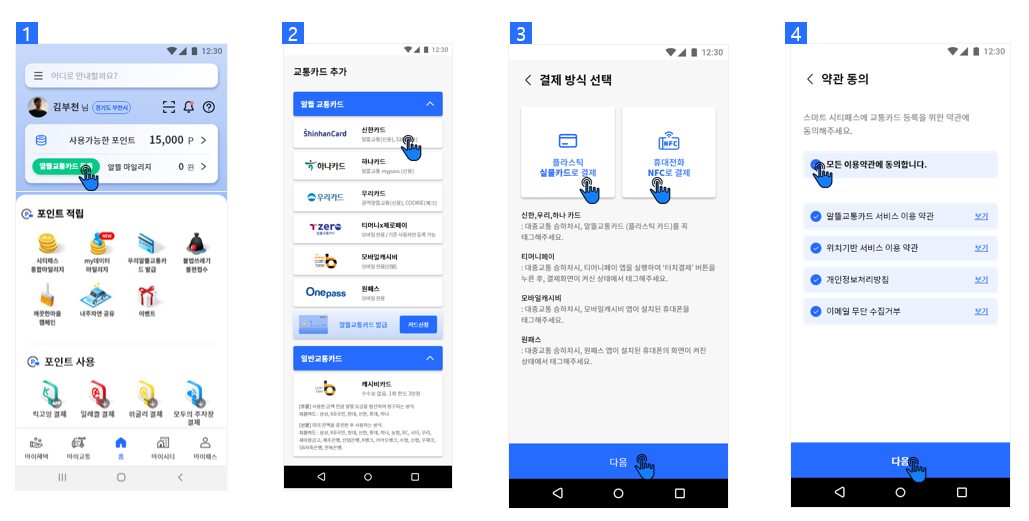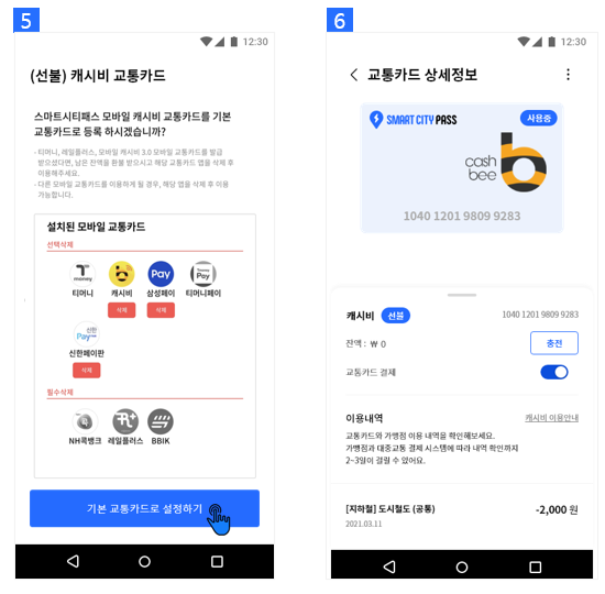 ⑤ 앱 충돌 또는 중복 결제를 방지하기 위해 스마트 시티패스 앱을 기본 교통카드로 설정 해야 합니다.