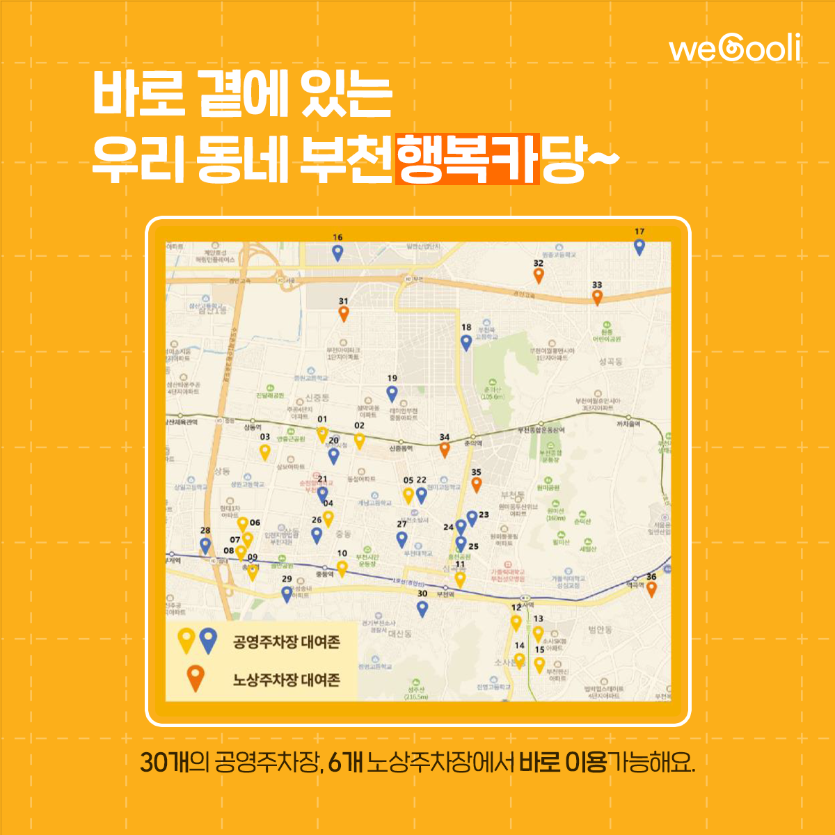 ③위굴리 앱이 실행되며 위굴리 메인 화면이 보여집니다. 다시 한번 원하는 위치의 마커를 선택하여 예약 및 결제를 진행합니다.
