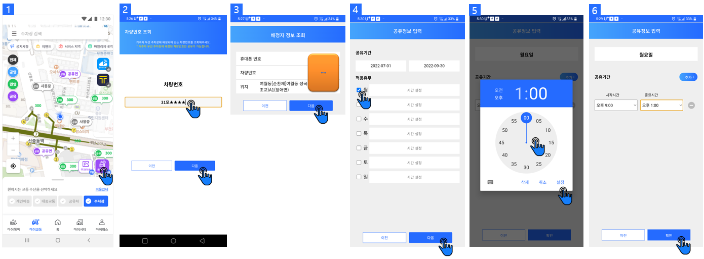 ⑤예약하여 주차할 차량 번호를 확인하고 [다음] 버튼을 클릭합니다.