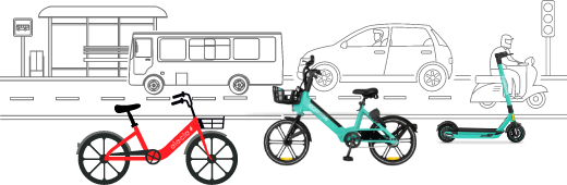 ①스마트 시티패스 앱 하단에 있는 [마이교통]을 누르고, [개인이동]을 선택하면 지도 위에 나오는 자전거 위치 마커 중 원하는 위치의 마커를 선택합니다.