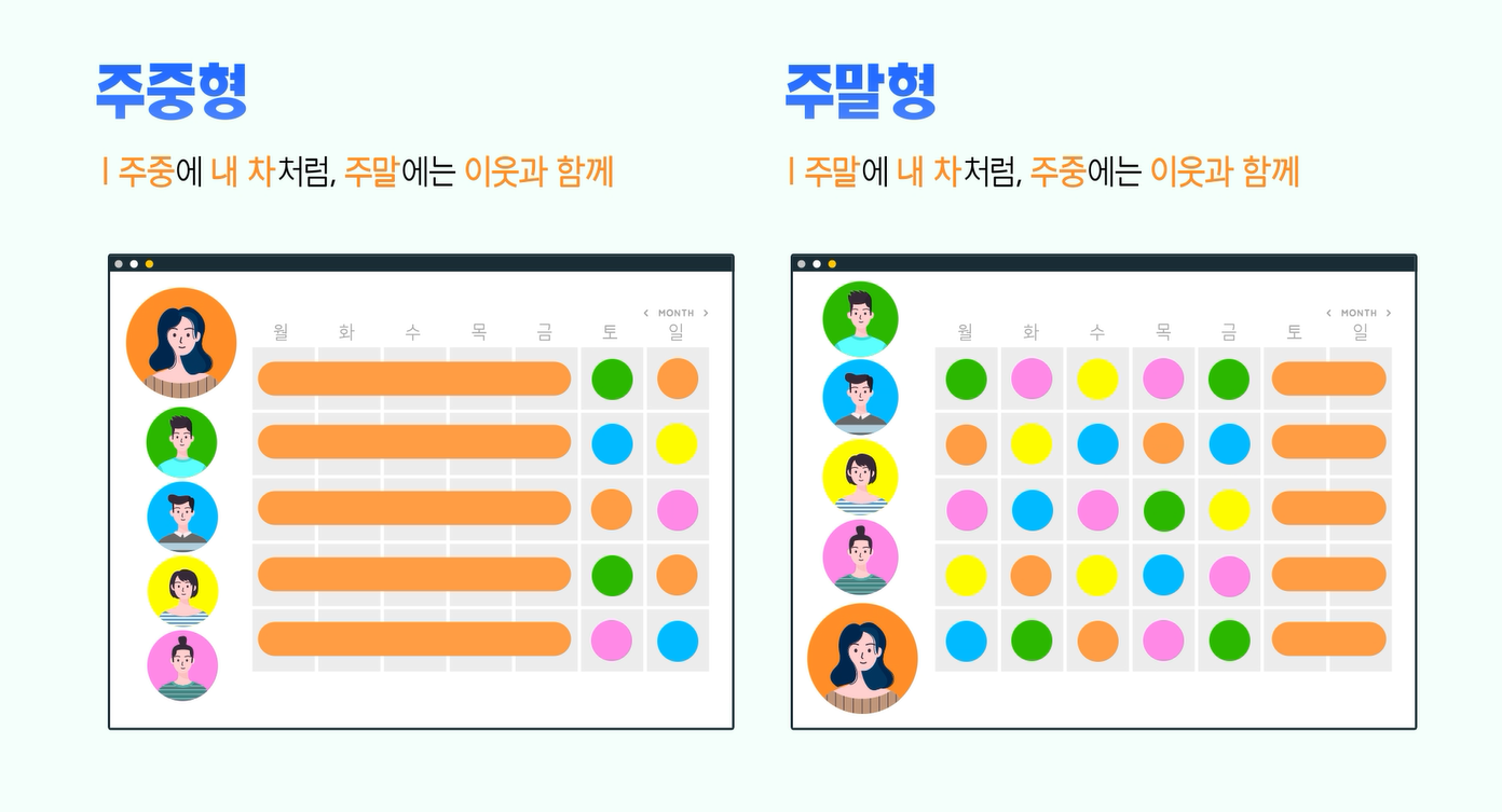 ④사용하지 않는, 공유하고자 하는 요일을 체크하고, 시간 설정을 클릭합니다.