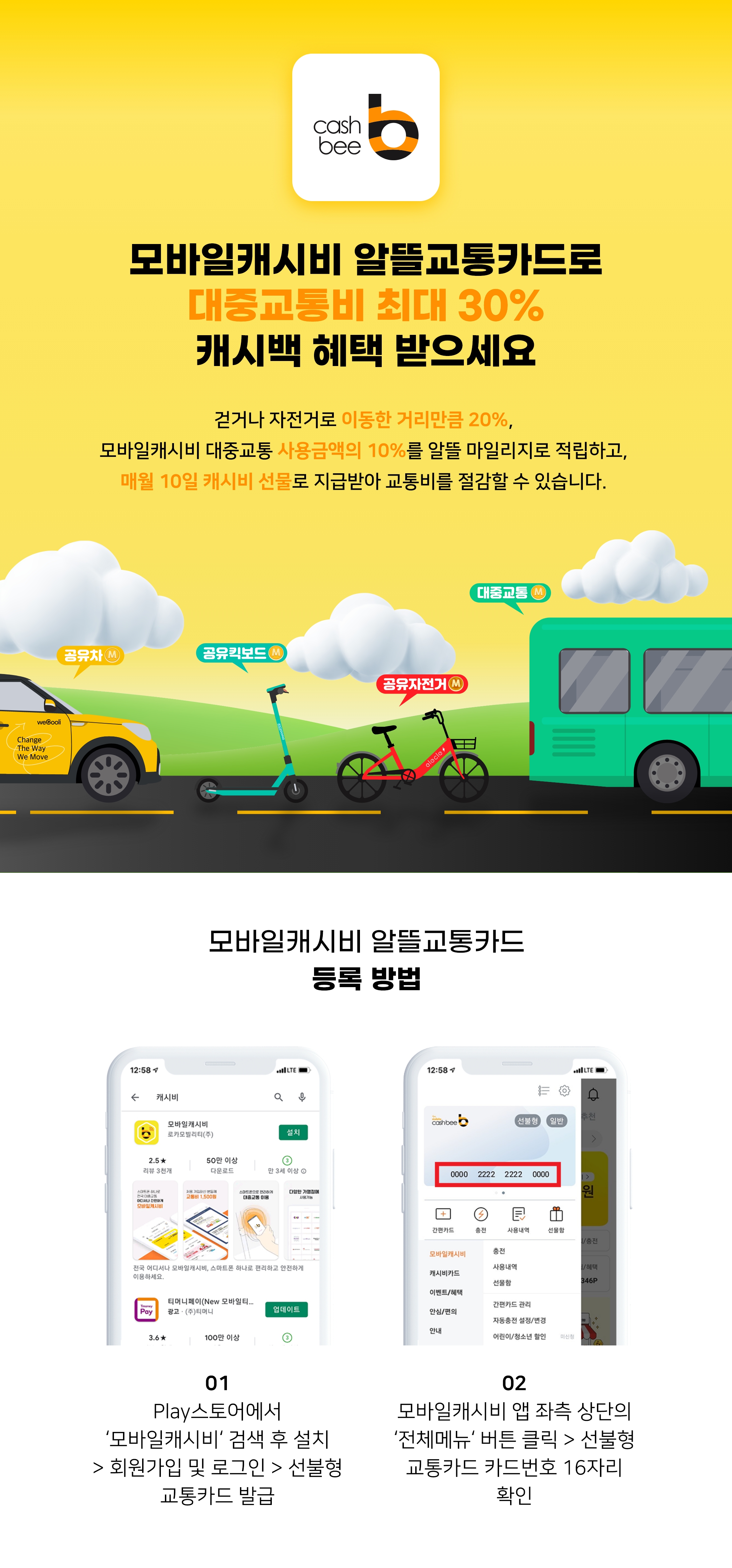 모바일캐시비 알뜰교통카드 등록하기!
