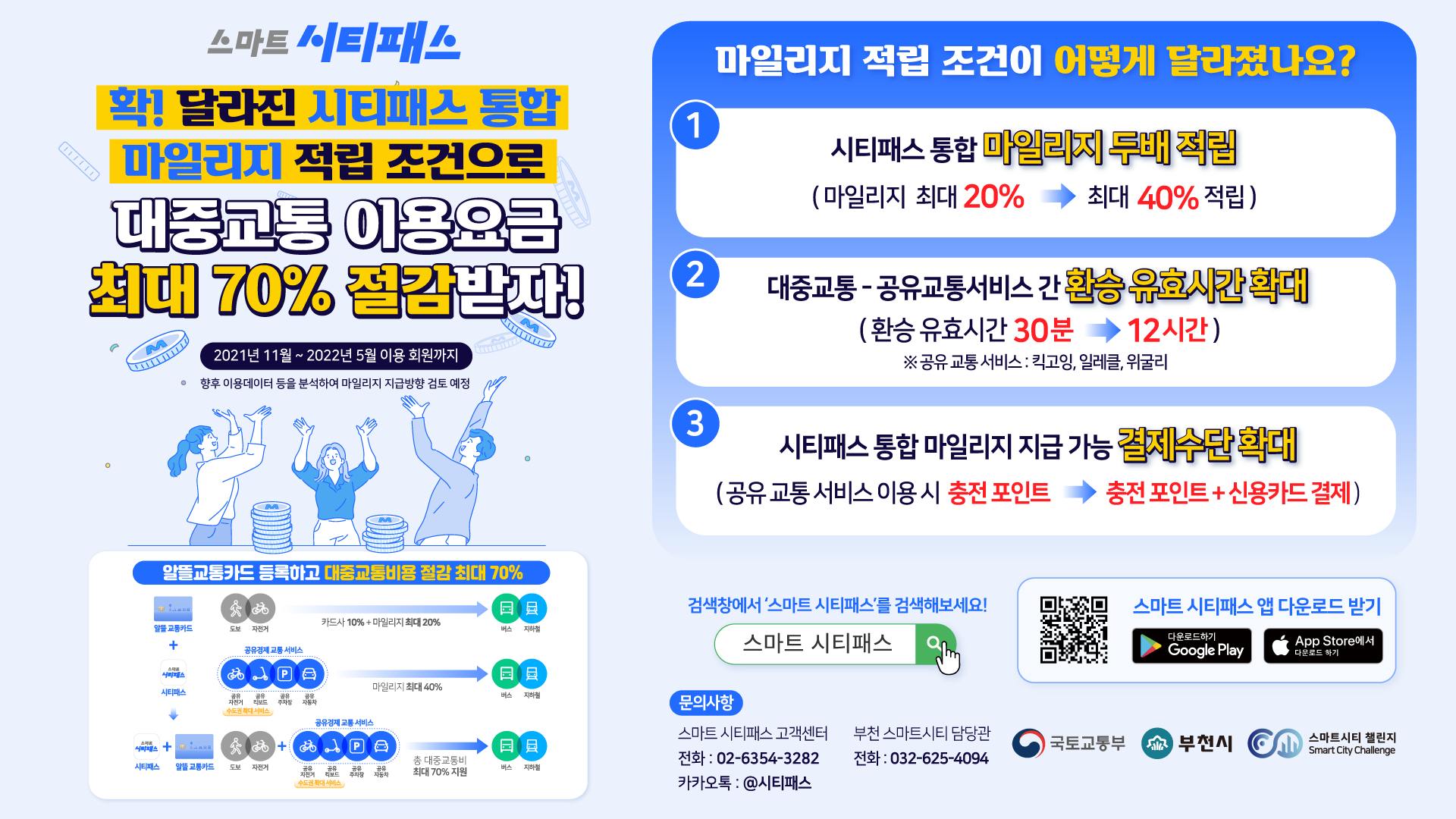 국토교통부 알뜰교통카드와 부천시 스마트시티패스가 뭉쳐 대중교통비 최대 70% 절감, 시민체감도 UP
